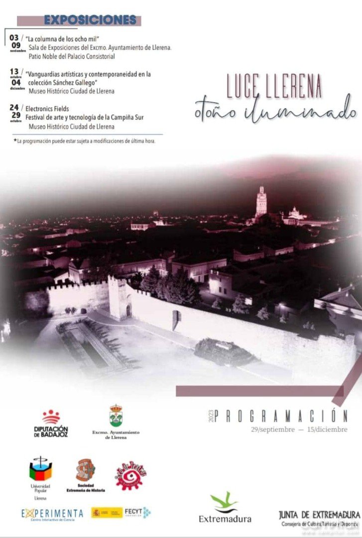 Luce Llerena, Otoño Iluminado 2023 aglutina una interesante oferta cultural que se desarrollará en Llerena desde el viernes 29 de septiembre hasta el viernes 15 de diciembre.